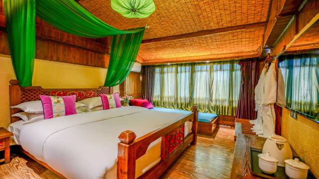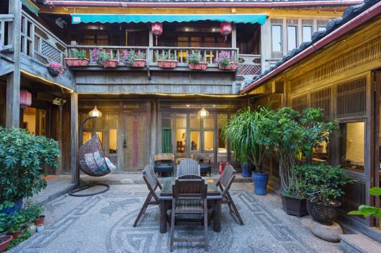 推开古老厚重的大门,一个传统纳西庭院展现在你面前,院内藤椅、茶台、雕花木桌、树木、鲜花,让人感叹。蓝天、白云、小桥、流水,令人流连忘返。在这里享受温暖的阳光,品着普洱茶,您将忘记时间,忘记尘世的喧闹,只与蓝天白云共享诗人般的隐居生活。