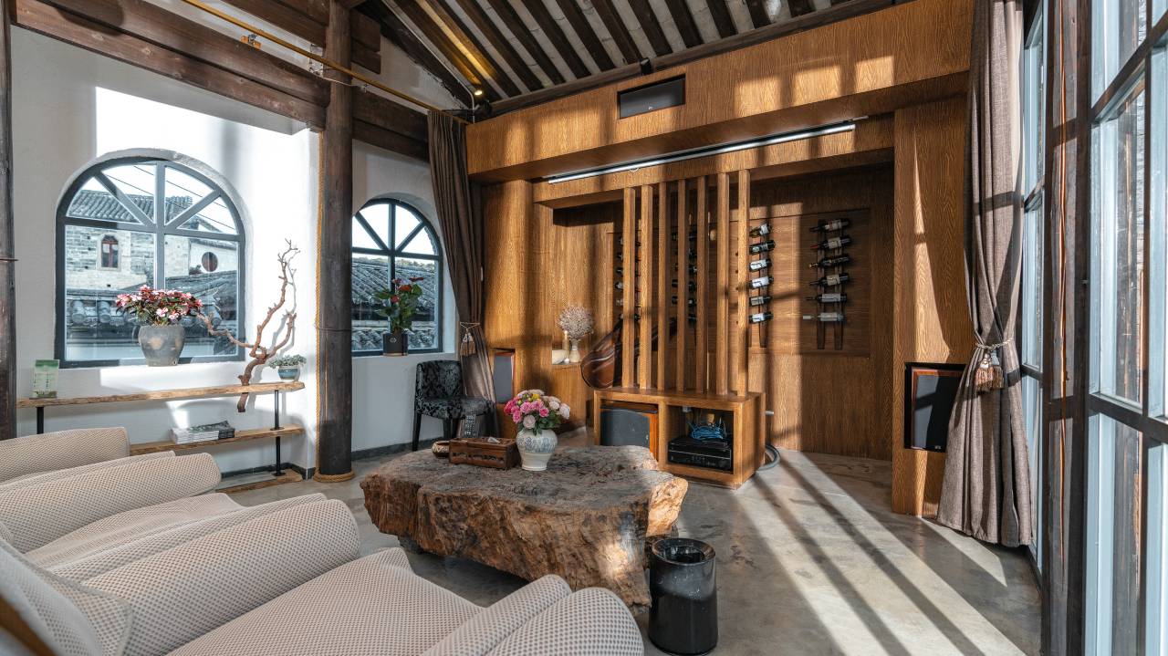 房间布置复古加现代感,面积很大。大落地窗,可坐在落地窗前喝茶,晒太阳,窗外湖水、古建筑、绿意相互辉映,美不胜收,房间细节很用心。老板豪爽开朗,脸上的笑容如沐春风,两位管家勤快,热情,早饭可照顾住客口味,做得很用心,根据住客意愿帮着做游玩攻略,订票(比在景区买票要便宜哦)。
