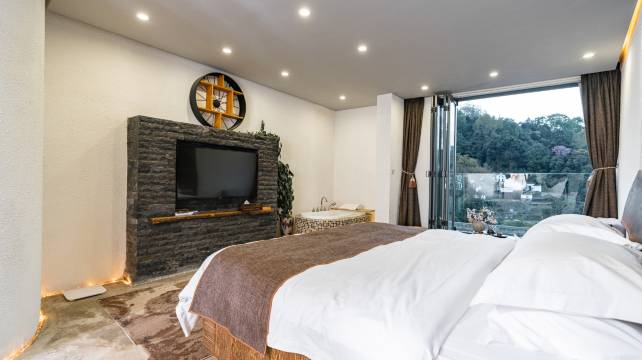 客栈有阳光湖景大床房、温馨湖景家庭房、浪漫湖景星空圆床房。精心布置的客房,洁净而素雅;全景落地窗加电动天窗设计,时尚而私密;山泉水泡池浴配上红酒,陪爱人观湖景、看星星、赏月亮,浪漫而甜蜜。除此之外,每个房间均配有地暖哦,房间的空气也在客栈的照顾范围之内。总之,客栈不仅有柴米油盐酱醋茶,还有琴棋书画诗酒花。在这里,慢下来懒下来才是正经事。