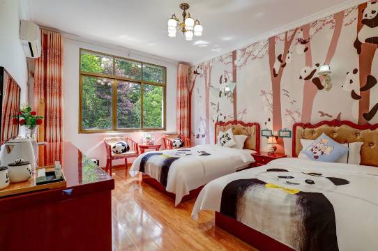 猫粉儿的好选择,非常适合顶门去看熊熊们。酒店墙画、杯子、凳子、拖鞋等等也是熊猫主题,内室干净整洁,早饭也很丰盛.由于赶时间一时没打到下山出租车,老板还帮忙载到游客中心方便打车,很nice的老板一家。