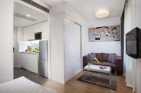 主要针对国内外商务人士,提供短租及长租服务。通过精心设计及合理布局为客人提供符合需求的房间。通过柔和的色彩及多功能的布局,可为国内外的住客创造一个满足需求的舒适环境。所有房间内特别配置美国“金可儿 KINGKOIL”床垫及舒适床品,为您及您的家人带来真正的“零压甜梦”。
