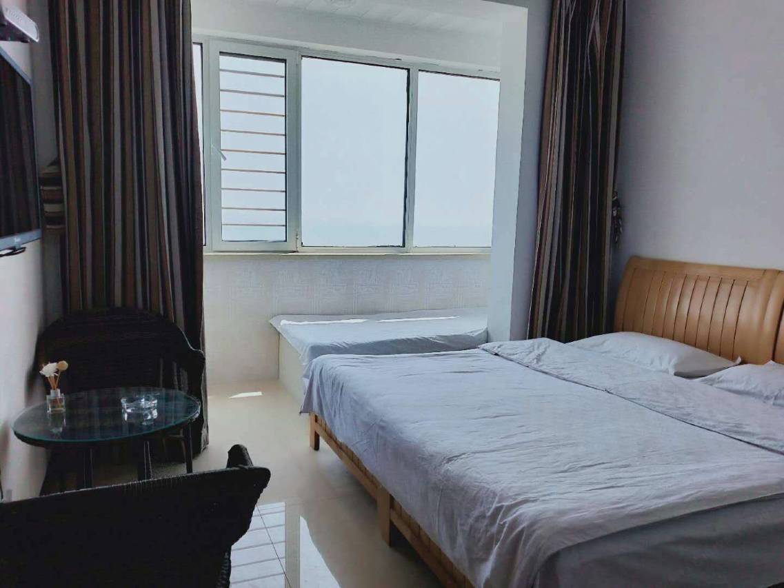 本公寓对着海滨浴场正门是观海公寓,位于11层,有电梯,90平米,三室一厅一卫一厨,两张双人床,一张单人床(另外还可加床)躺在床上就可以看海上日出日落,美的不要不要的。可以穿泳衣下楼,部队管理小区,保障安全,生活设施齐全,厨房有电磁炉可以自己烹饪海鲜,24小时热水,免费WIFI,价格合理。窗明几净,凉爽舒适,保证是您的选择!