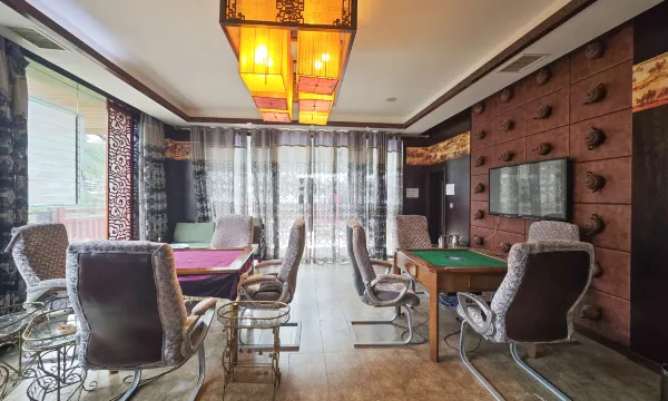民宿地处海螺沟海拔1580米的山、水之间.这里群山环抱,云雾缭绕,可览雪山,森林美景,本民宿占地面积近4000平米,设有38间客房,取材于原始森林的全实木古朴民风设计,设有纯天然的硫磺温泉泡池,可体验著名的贡嘎温泉。