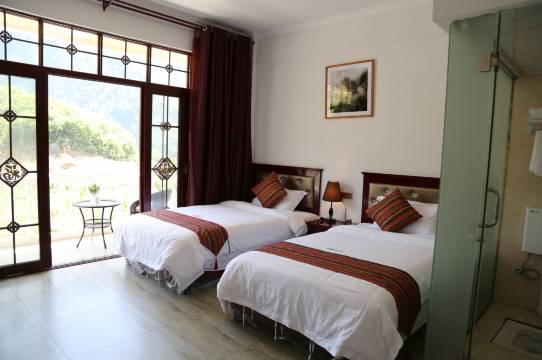 独立阳台超级大,可以看到不远处的风景区,空气清新,晚餐分量大,还可以双拼,可以吃到真正的当地美食。
