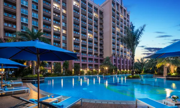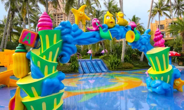 酒店泳池有好几个,后面就是海滩,还有丰富的亲子活动,很适合亲子游,免费升级了房型,早餐也丰富,还可以免费租借赶海的工具,还赠送了儿童洗护用品,房间服务员也非常细心,卫生打扫的很干净,总之非常好,连住了好多天。