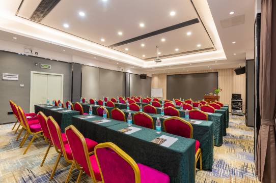 酒店新推出高级语音智能情侣房,深受年轻人喜欢。智能化设备、巨幕投影,小度语音控制系统,客房清洁,干净温馨,消防安全设施齐全,房间均配备独立干湿分离卫生间、有线电视、电脑宽带、空调、24小时热水等,有多媒体会议室,能容纳50-60人小型会议,LED投屏,住宿、会议一条龙服务。
