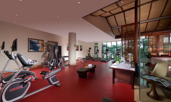 路过健身房,看到跑步机对着的视野就是四明湖。酒店去杉野茶咖很近,开车基本10分钟以内就可以到啦!
