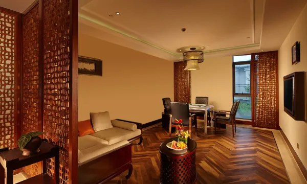 酒店秉承生态、自然、休闲、养生的旅居理念,酒店位于余姚市梁弄古镇,风光旖旎的四明湖畔,依山傍水、环境优美、景致怡人,宛若明珠玉盘镶嵌于湖光山色之间,建筑错落有致、浑然天成,外观蕴含江南庭院式的建筑风格,毓秀的园林庭园曲径清幽、格调典雅。