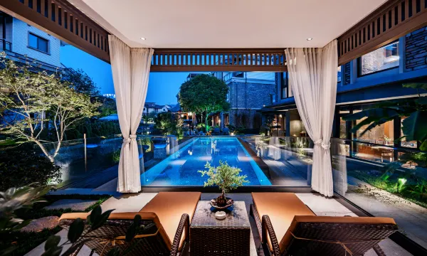 悦·水庄名宿位于国家公园武夷山度假区的武夷水庄,名宿内草树掩映,环境优美,是一个适合度假的***别墅酒店。交通便利:距离武夷山景区北入口3公里,机场5公里,高铁北站14公里;娱乐活动设施:会议室、影音室(KTV、电影房)、室内棋牌室、露天花园、户外泳池、多独立茶室、房间内独立庭院、水吧等;餐饮服务:开放式料理台,中西餐厅,无接触送餐等;通用设施:恒温热水、新风空调、杜拉维特、科勒卫浴;前台服务:贵重物品保管、行李寄存、叫醒服务、24小时前台、礼宾服务、邮政服务、叫车服务等;清洁服务:每日清扫、自助洗烘衣服务等。常言道:“知者乐山,仁者乐水”。山水性情,既能映射一个人的品性,也能展现其对生活、对世事的气度。