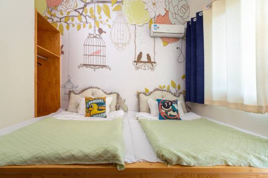 酒店位置不错,步行距离景区入口只需5分钟左右;房间设施齐全,一层是客厅厨房,有投影大幕布和电磁炉,简易厨具如锅,可以烧水热奶的,二层是两个1.8米的大床房卧室和卫生间,适合带孩子出去玩儿的家庭。房间和卫生间设施稍显简陋老旧,但是热水很热,冬天取暖也很好,有空调和暖风机,床品也很舒服。总体来说,在古北景区玩儿性价比很高,值得推荐。