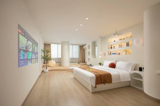 离地铁很近,房间很大,性价比很高,朋友推荐的外卖也能送上门,非常的不错,投影很清晰