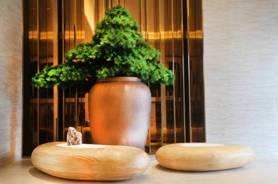 酒店在概念上秉承儒家"五德思想--温、良、恭、简、让"。依循着中国人传统儒学的思想脉络:在酒店风格的设计上去除不必要的元素,回归到使用上的初衷;在酒店空间中运用竹、松、木及大面积的留白,为在纷扰的城市里面给人带来一片自然纯净的静土;在房间的布局上更发挥使用上的效益,简敛的线条,框架的延伸,让顾客回归到最真实的体验,亲切而舒适;在服务上提倡人们需要及适度的安然享受。当一切都回到最初的本质时,最直接的感受就会真实的呈现,我们希望打造出酒店的本质,回到真实的感受,不凸显不造作,一切就是这么熟悉,舒适的理所当然。