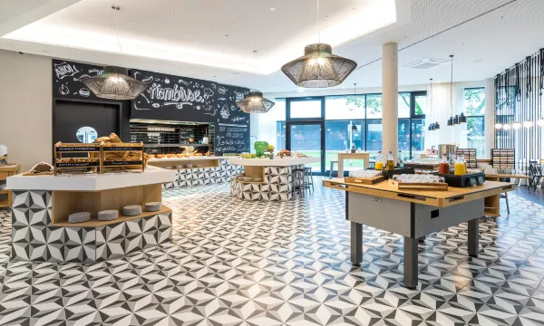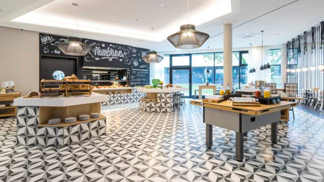 您可以去Restaurant Freihafen享用一顿美餐,也可以待在房间里,享受酒店的 24 小时送餐服务。在忙碌的一天后,不妨去酒吧/酒廊轻松一下。自助式早餐(收费)供应时间为:周一至周五 06:00 至 10:00,周末 07:00 至 11:00。