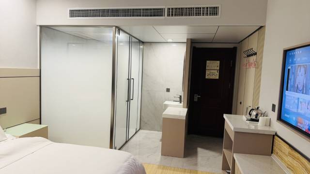 客房内的所有设施都是经过精心的考虑和安排,包括空调、液晶电视机和房间内高速上网,满足您入住需求的同时又能增添家的温馨感。有饮水需求的旅客,酒店还为您提供了电热水壶和免费瓶装水。除此之外,配备有拖鞋、24小时热水和吹风机的浴室是您消除一天疲劳的好地方。