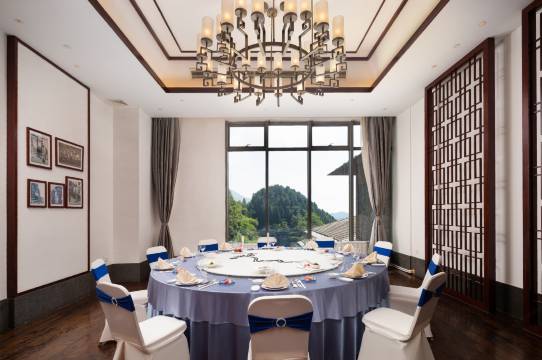 酒店位于牯岭镇白云观路,花径景点旁。四面环山,在独立山谷,坐拥上百亩原始松林,有原生态景致,这是一个云海常年笼罩的秘境,落日余晖的奇镜。酒店拥有多间精美设计的客房,都已配备全景落地窗,让住客尽情欣赏窗外如诗如画的景色。另外酒店设有中、西餐厅、大堂吧,为不同的场合提供了不同的就餐选择;5个大小不同的多功能厅,配以完善的现代化会务设施,将满足您不同与城市的会议需求;室内游泳池(5月—10月左右,视天气而定),健身房、棋牌室、KTV等娱乐设施,是休闲养生的不二选择;春日采摘、夏日游泳派对、秋日森林探险、冬日天然滑雪道,冬日具有中央空调,暖气片,地暖三重供暖系统,是四季出行的必然选择。
