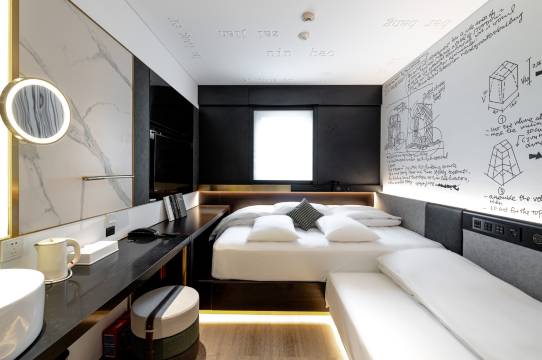 酒店是华住旗下中高端品牌CitiGO的全球旗舰店。住在CitiGO,开门不用房卡,看电视不用遥控器,连空调、灯光、窗帘都能用手机智能控制。餐厅酒吧、健身房、自助洗衣房、游戏休闲区、共享办公区、会议室……旅行者和本地居民坐在一起,认识新朋友,畅聊城中热点新闻。