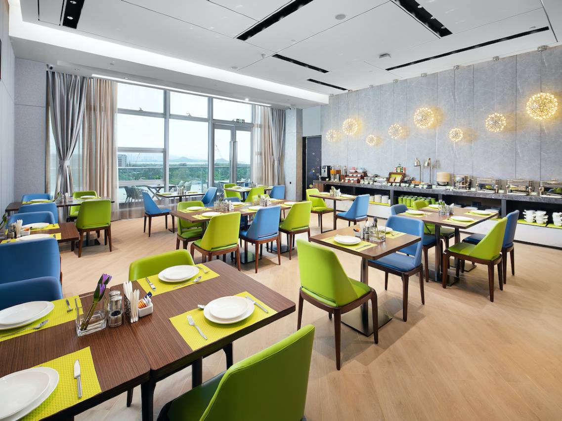 房间宽敞明亮,带有洗烘一体的洗衣机,对出差久的特别加分。窗外风景很好,可以看到红树林公园,以及香港那边。周围出行也很方便,餐厅也不少,不会有住在工业园区的感觉。每天的早餐很丰富,特别是餐厅的刘阿姨,特别热情,服务周到。这次带小孩出差,刘阿姨特别关照。有次看孩子不高兴,还送了个小玩具,孩子破涕为笑,特别贴心。特别推荐这家给商务出行的伙伴们。