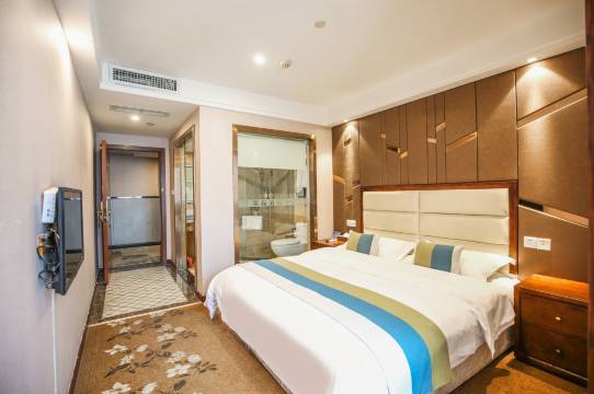 很不错的酒店 性价比很高 卫生也干净 门口就有公交站交通方便 旁边还有停车场商场 再外面一点是广场 过氛围很浓厚