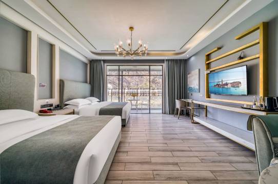 本酒店是怒江一家轻奢带江景风格的酒店,位于怒江新旧城中央,坐落在怒江西岸风情商业街旁,是商务和休闲人士下塌的理想之选。酒店三楼有一个花园茶吧可供客人使用,四楼也有一个大花园可以同时看到怒江和怒江大峡谷。所有房间配备43寸液晶小米电视,可调控灯光,舒适的办公桌和座椅,免费高速网络覆盖全酒店,设计现代轻奢的风格融入健康环保理念,乳胶床垫和乳胶枕头助您安然入睡,让您尽享一夜酣畅睡眠。房间阳台可观美丽的江景。