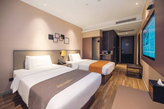 前台服务很热情(最开始订的隔壁一家酒店,对比太明显了)很耐心的解决各种问题,房间干净整洁,无异味,厕所也干净,水压是我觉得可以的程度,热水来的很快!酒店地方离轻轨站非常近,出门就是!