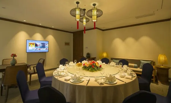 酒店徽派中式装修,卧眠徽式乡村画里,推窗即见云海浮动,承接大小型活动会议,配有餐饮、茶道、宴会厅,满足多样的活动需求。