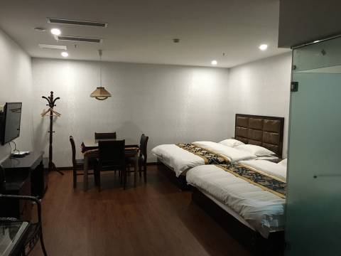 怎么说呢。淡季,本来是大床房的给升级了房间,挺好的。环境其实还可以。简单干净,还有麻将什么的。还爱