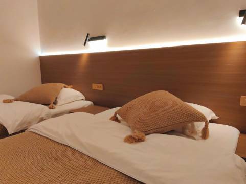 定了一个双床一个大床。