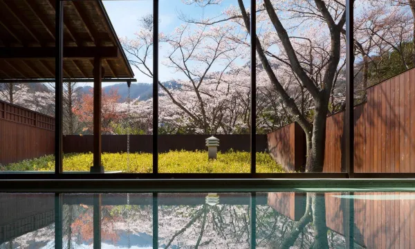 温泉景观特别美,樱花季节温泉望出去就是,红叶季节,满山院子里都是