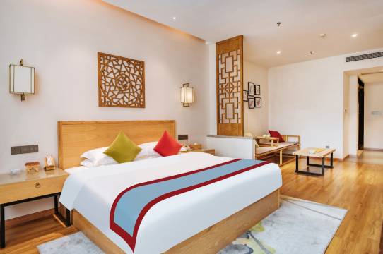 酒店建筑面积近3000平方米,配备早餐厅及休闲书吧,配套停车位50个。酒店设计、空间感十足;房间环境清奢雅致,配有高端自动马桶、浴缸、电冰箱、高品质的中式家具和客房用品,精致细腻,舒适怡人。