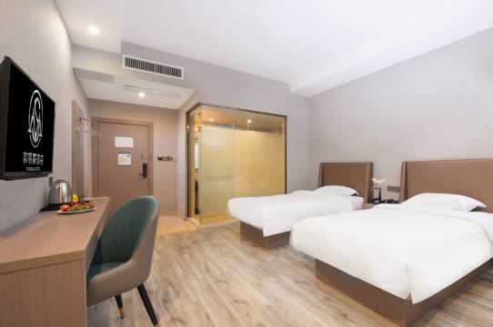 房间的布局十分合理,设施配备也超贴心。卫生间干湿分离做得特别到位,空间宽敞,没有一丝局促感,镜子自带灯光,对爱美的女生来说,简直是化妆神器,光线恰到好处,妆容细节都能完美把控。