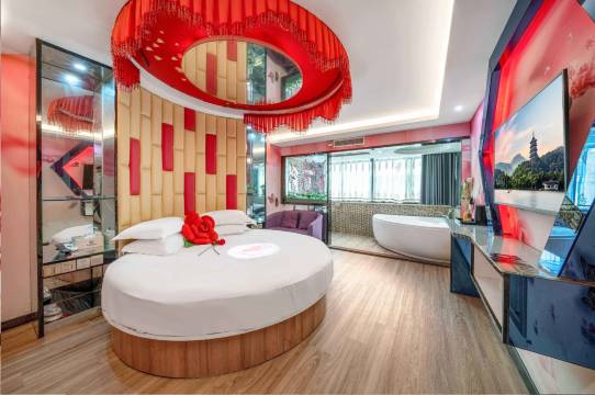 酒店设施齐全,内设豪华圆床房、大床房、时尚双人房。