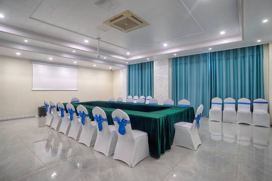 酒店提供中西自助早餐,有五十五个品种,品种丰富,味道佳,所有菜品均采自盛客隆基地有机蔬菜,吃的健康,安心。享在酒店:机器人服务:智能机器人可为您送餐外卖、多种送客房服务,减少人员接触,十分时尚。健身房:多种健身器材,满足您锻炼身体,放松自己的需求。洗衣房:一站式洗衣服务、熨衣服务,送到房间。会议室:多功能会议室,支持投影,网络信号良好。