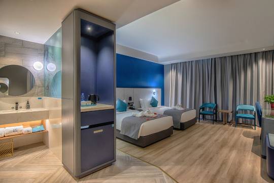 房间很大,3大一小住亲子房非常宽敞。
