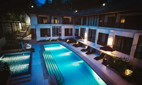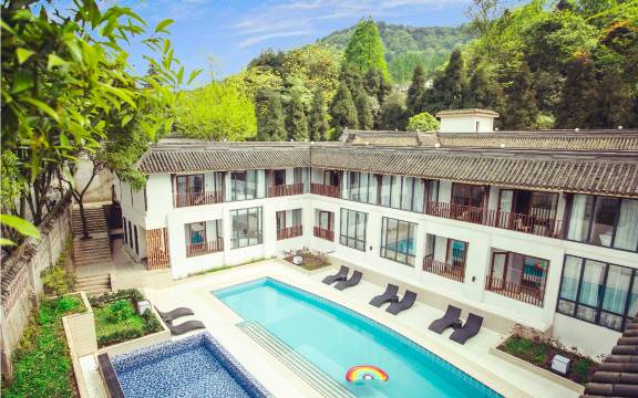 酒店有一个超大户外泳池、一个儿童戏水池,住店客人无限次痛快畅游(夏季开放); 三个公共温泉汤池:一个半室内池,一个观山露天大池,一个半山森林玻璃无边池(冬季开放); 室内儿童乐园区、咖啡休闲区、健身房和机麻包房、屋顶全景品茗区、独立的烧烤区域和美式烤架,使大人小孩在酒店待一天都不会无聊; 200 ㎡大型餐厅和家庭包间,提供川菜、西餐和儿童餐,功能完备的烘培房出品各类自制糕点; 酒店配套 230 ㎡大会议室和小会议厅,可举行大型会议也可举办派对。