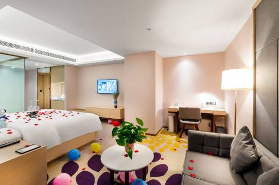前台服务态度好,看我们带孩子主动帮我们升级房型 酒店地理位置也很好 楼下就是商圈 很热闹 性价比很高