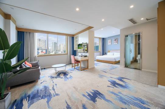 房间很大,干净卫生,卫生间干湿分别,门前房后均有停车场,除有早夕之外,晚上还提供夜宵,想吃什么提前跟前台说明,到时你能满意吃到了。服务热情周到,吃饭不是最方便,但前台小姐姐会给你指明方向…