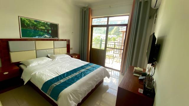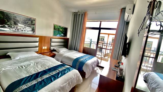 距离小七孔西门还行,旁边还有一家妆造店也很便宜,不错,周围都是民宿吃的东西,差不多价格比较贵,旁边还有篮球比赛基本村子里都是游客在东西都挺贵的,这家民宿挺不错的,老板和老板娘服务态度非常好,非常好,亲切和善,房间价格中等,卫生有一点死角,民宿有接送服务,应该是只有送你到景区没有到高铁站,但是老板可以帮你叫车联系拼车和大巴车,民宿的饭,味道也不错,很质朴,民宿有阳台,旁边就能看到大山大山,早上起来还有雾气仙气飘飘很好看,再说一遍,民宿老板真的非常亲切,人超级好