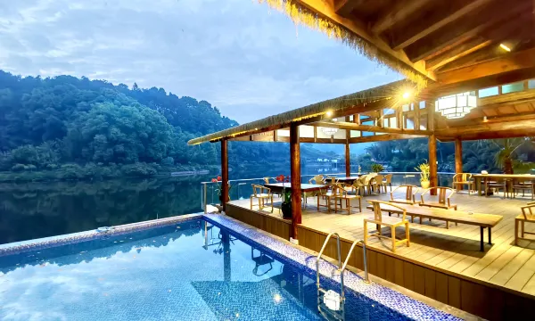 玩——露天无边泳池、划船、钓鱼、鲜果采摘、看日出、烧烤、品茗、棋牌、放烟花、环湖步道、发呆……..