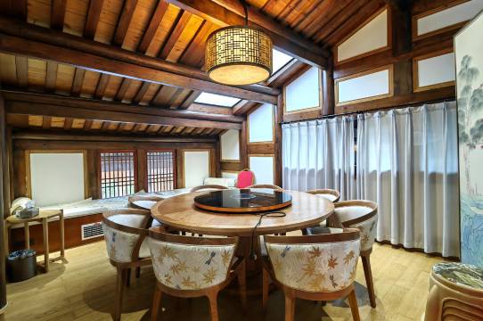 不错的一次体验。宅子集徽派江南建筑为一体,改建自道光甲辰年的廖姓官员别院,建筑群大气且精致,设计相当用心,推开院门迈进内院瞬间穿越。服务周到,老板诚意满满。夏季赏荷荡舟游泳,冬季围炉烤火放烟花,好不惬意!长辈平层,晚辈跃层,老少皆宜。下次家族聚会就选他啦😉
