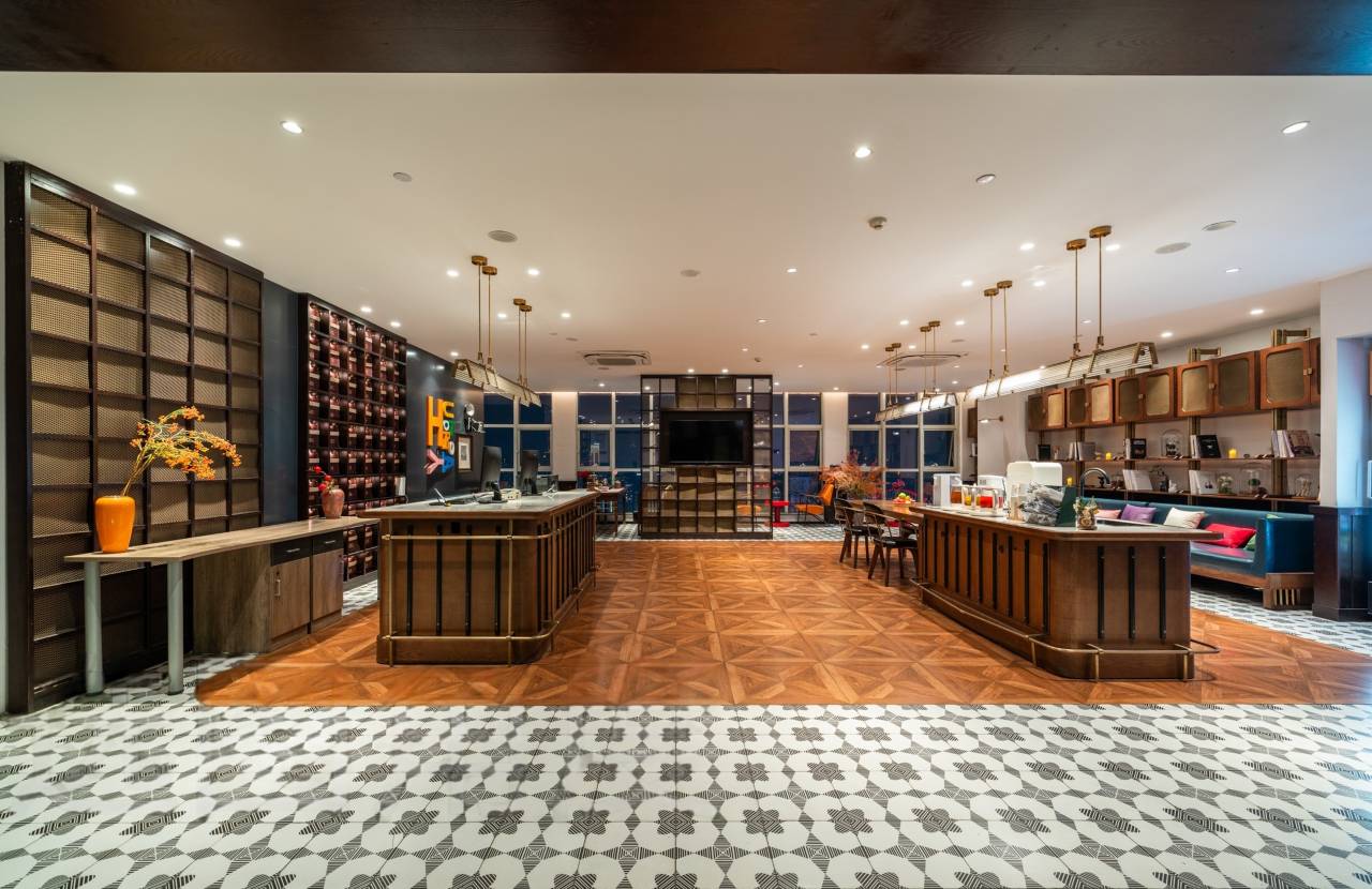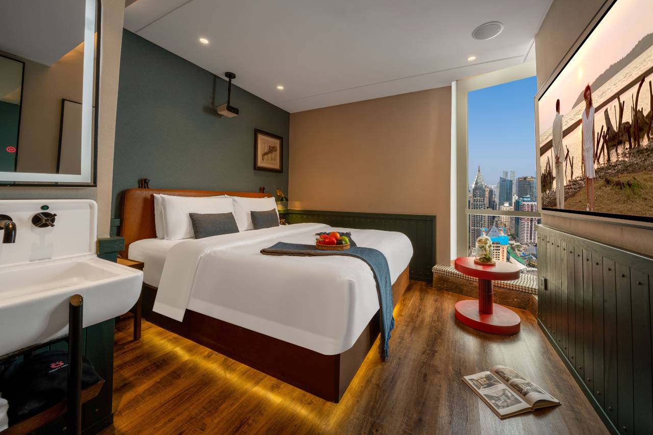 酒店坐落于渝中区解放碑商圈核心的新华国际46楼,身处重庆CBD核心地带,是俯瞰山城璀璨夜色与两江交汇盛景的不二之选。 江北国际机场可选择地铁10号线转1号线至"较场口"站(全程约50分钟),或搭乘酒店收费接送机服务直达;重庆北站打车20分钟即可抵达,也可地铁10号线转2号线仅需30分钟。下楼步行1分钟即达轨道交通1、2号线"较场口"枢纽站,轻松串联全城热门景点。自驾宾客可便捷停放至周边英利大融城地下停车场。 客房均分布于45楼以上高空区域,全景落地窗将长江与嘉陵江交汇的壮阔江景、解放碑天际线及璀璨夜景尽收眼底。每当夜幕降临,两江灯光璀璨,游船穿梭,站在窗前仿佛置身云端画卷之中。房间内配备100寸巨幕投影、智能客控系统及定制床垫,让宾客在高空美景中尽享舒适。 步行10分钟可达长江索道新华路北站,体验"空中公交车"跨越长江的独特视角;地铁2号线直达李子坝穿楼轻轨站,打卡魔幻山城的标志性景观。洪崖洞民俗风景区、朝天门来福士等热门地标也可步行或地铁快速抵达,轻松玩转重庆网红景点。 酒店周边汇聚众多高分打卡美食:步行1分钟即到八一好吃街,酸辣粉、锅巴洋芋、山城小汤圆等地道小吃应有尽有;周边还有多家重庆老字号火锅及江湖菜馆,让宾客足不出户便能开启一场麻辣鲜香的味蕾之旅。 酒店以美式复古风格为基调,暖调灯光搭配艺术装饰画与英式复古电话,营造出温馨典雅的氛围。提供行程规划、景点门票预订等贴心服务,配备免费洗衣房、健身房及休息区,大堂每日供应免费现磨咖啡与特制茶点。凭借独特的高空江景优势与细致服务,成为探索魔幻山城的理想下榻之地。