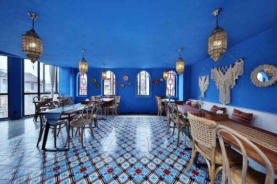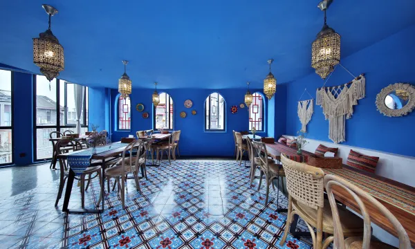 这是城市里的蓝色土耳其度假生活馆,让你游玩度假两不误。异域风情民宿以色彩鲜明的空间作为基调,叠加爱琴海特色的蓝、土耳其洞红泥墙、摩洛哥魅力绿。整个空间以爱情海异域风情颜色作为灵魂,整个空间充满浓浓的艺术气息。置身艺术的空间,忘却时间的流逝享受娴暇休闲时光。