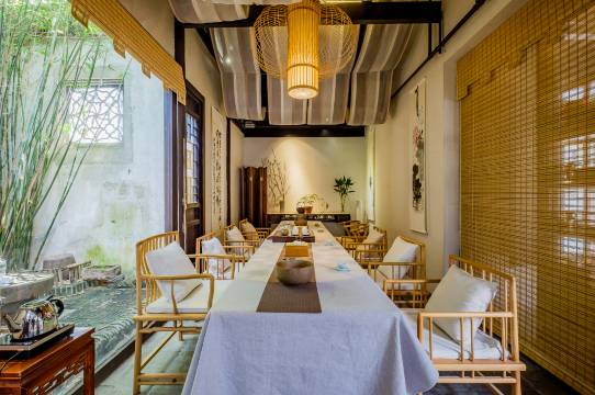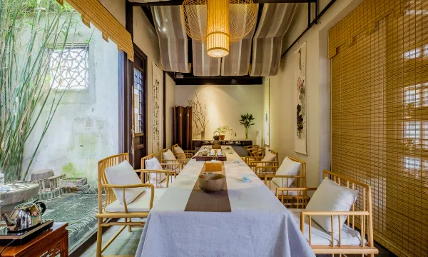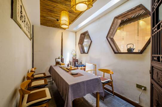 客栈设有前厅,配有茶具茶叶、古琴棋局等展览。提供早餐与送餐服务,让顾客可以及时品尝到最纯正的食物口感。同时也可承接小型团队会议。