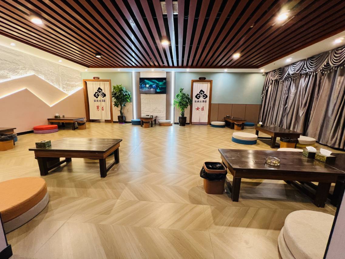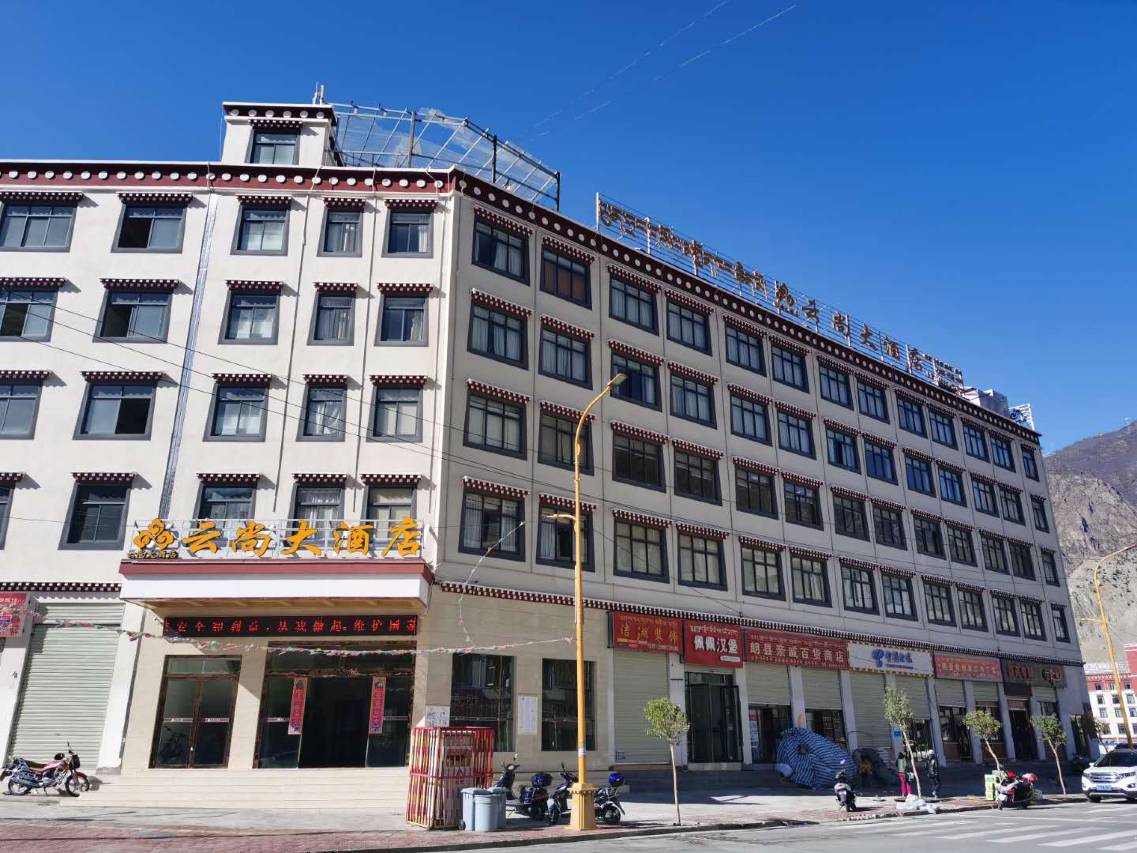 云尚大酒店是集餐饮、会议、休闲娱乐为一体的综合型商务酒店,酒店位于林芝市朗县光明新区,是您商务洽谈、品尝美食及居家休闲的梦幻天堂。酒店功能完善,设有包括豪华大床房、豪华商务套房等各色客房23间,酒店拥有中餐厅、西餐厅两个不同风味的餐饮场所,就餐总座位数70余位,spa桑拿及蒸房,酒店全年水暖:无电流,无电磁辐射,不头晕不干燥、持久恒温,可为宾客提供各式全新的酒店住宿、饮食、宴会、会议、和娱乐一体化的服务。餐饮作为本酒店特色产品之一,菜式出品呈现多样化,能够满足宾客多样化饮食需求和高水准的服务要求,服务流程中体现“高科技”色彩,采以桌面化点菜系统,集合各地名师心得,着重丰富多彩的色、香、味、型,使用优质及造型优雅的器皿,借助器皿及盘饰的衬托,力显独具一格的饮食特色。