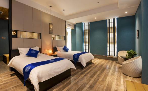 客房布置完善细致,风格典雅温馨,具有地暖、中央空调、自动马桶、数字电视、百兆光纤、地下停车场等,客栈竭尽所能为每一位宾客提供高效、便捷、优质的服务,期待您的光临。