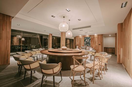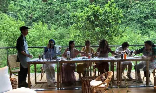 客房坐落在大山的怀抱之间,仿佛误入了隐世的林间小屋。斜倚在沙发,煮上壶茶,于茶香四溢间,遥望室外,朦胧远山溢出缥缈雾气,潺潺流水闪着细碎波光。坐在舒适的靠椅上小憩片刻,抬头便是层峦叠嶂,鸟雀啾鸣,不自觉便浸入了山野间。夜幕降临,仰望侧窗外的明灭繁星。步入幽静的私人庭院,融合酒吧、咖啡厅的功能的大堂,还设有少数民族敬奉的火塘。出走繁华的城市,深入僻静的山野。(接送服务:铜仁站至酒店)
