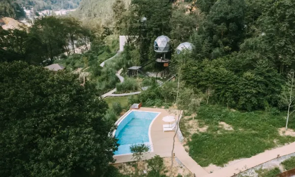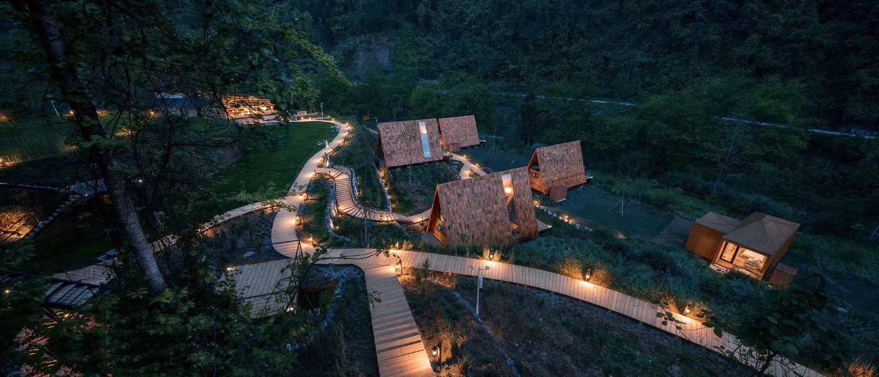 门店坐落在山水秀丽且风情淳朴的贵州铜仁。蜿蜒范木溪将树屋欢谷包围而起,周边零星散落着侗寨、苗寨,形成了一方几乎与世隔绝的桃源之地。