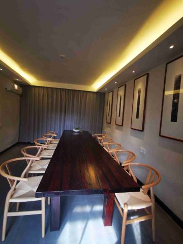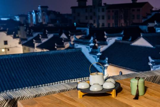 民宿白天古色古香,儒雅舒适,夜晚灯光适意,充满浪漫情调。可用于团建,提供烧烤、投影(如露天电影)、用餐、会议、场地布置等服务。