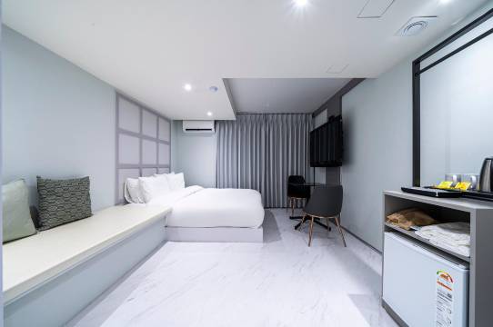 饭店里该有的都有,最有特色的是有提供泡面之类的供应到晚上23点,可能怕吵到其他客人,水也不怕客人拿直接大冰箱在柜台旁边,离西面店地铁站步行也算近,饭店后面是乐天百货后门停车场,刚好有个wowpass机台设置可以过去使用粉棒😌釜山普遍很难找寻机台,我住的那间厕所和洗澡的是分开的坐到干湿分离,虽然是免治马桶但也没关系,只是有个小缺点插座有点少,只在小冰箱上面二个,床边都无设置插座,能有会更加完美😍退房后仍可以寄放行李,也有椅子可以坐着休息片刻,老板人很好也不会说什么,西面站坐地铁去机场也方便,下次去西面住依旧会选他‼️