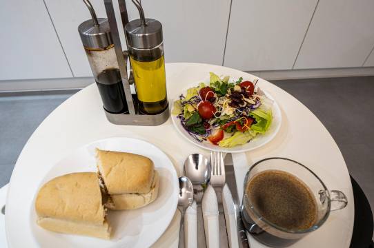 免费利用快餐店 (免费提供咖啡,面包、牛奶、饮料、杯面、麦片):超级方便也很干净美味