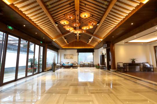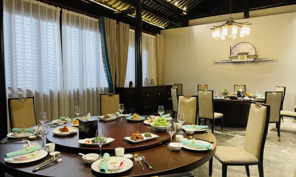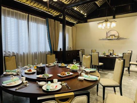 酒店古色古香,座落在荡口古镇的入口处不远位置,要拉着行李从停车场走一小段路进去,但沿路有风景,步移景换,不知不觉就到!房间比较宽敞,卫生间干湿分离,早餐是每个人一份的九宫格加现煮馄饨面!大堂有热茶咖啡供应,很贴心,暖柜里有暖的瓶装水!酒店里也有不错的亭台楼阁拍照位